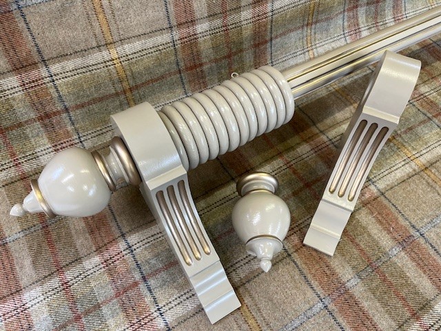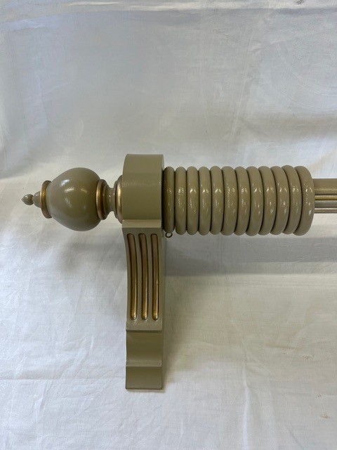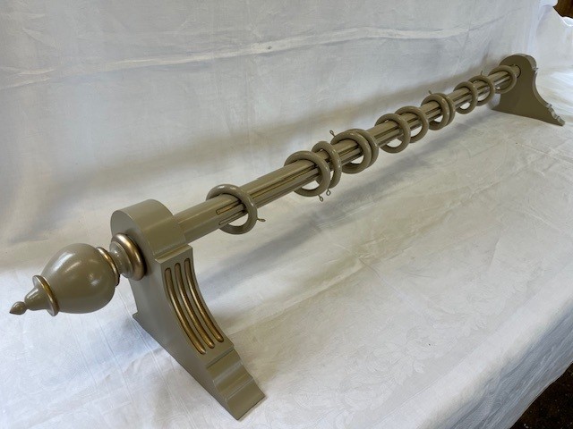It has a Fluted pole and two brackets, two Uncarved Jewel finials and a dozen rings.