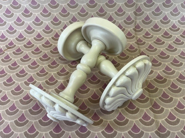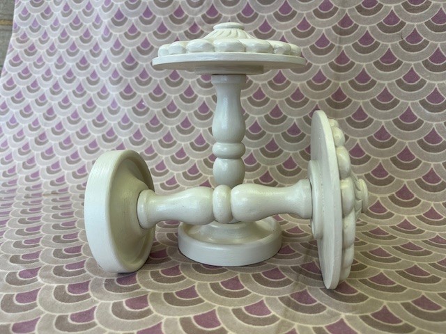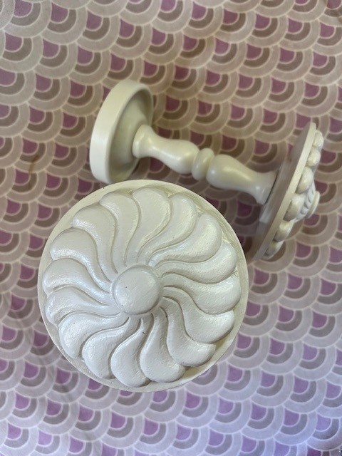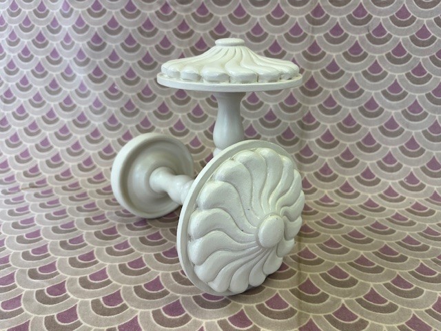 A pair of hand-carved Antique Swirl tiebacks, F&B Joa’s White