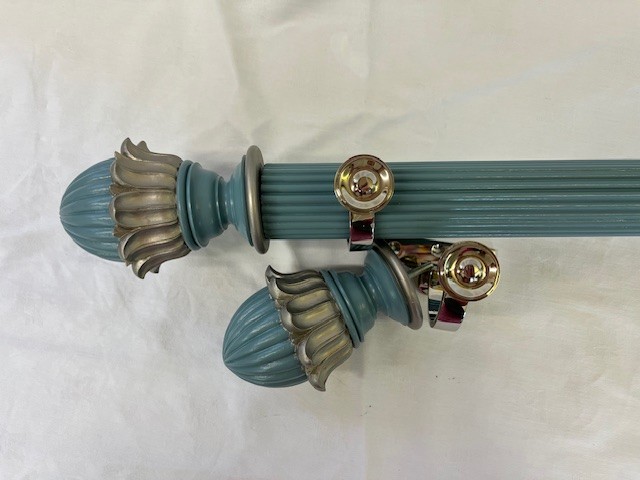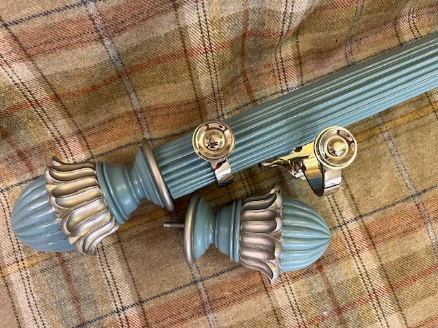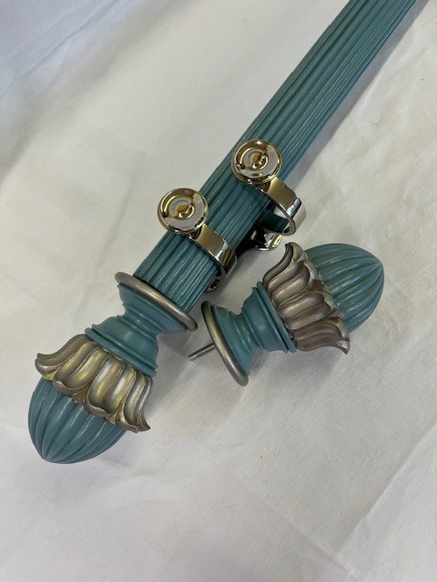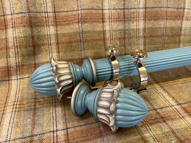 We have a Fine Reeded pole finished in F&B Berrington Blue and French gilt detailing, and have included a pair of nickel brackets.