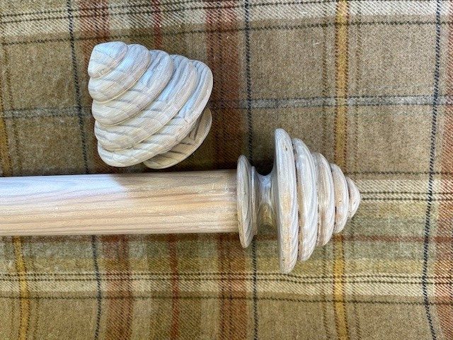 This is a simple set comprising of a limed pitch pine pole with a pair of our matching Inca finials is 50mm diameter.