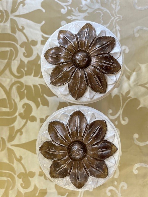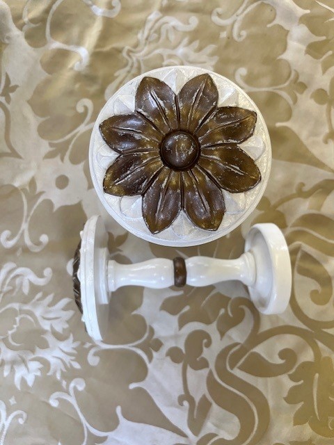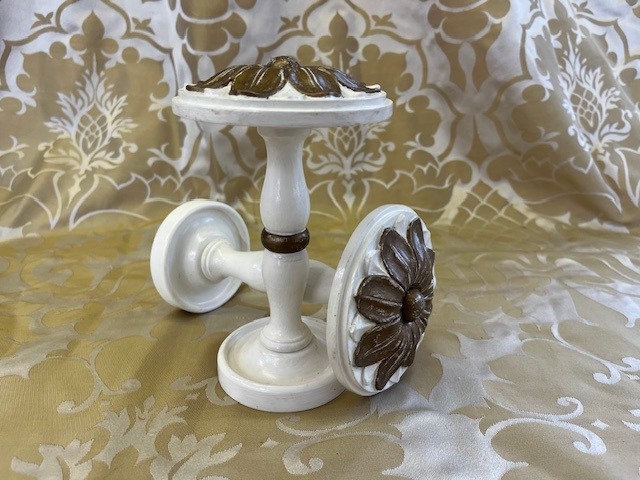Pair of Waterleaf tiebacks finished in F&B Wimbourne White and Rambouillet Gilt