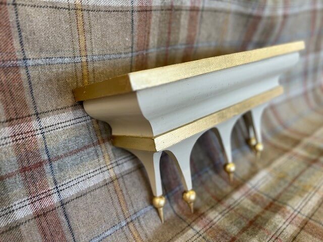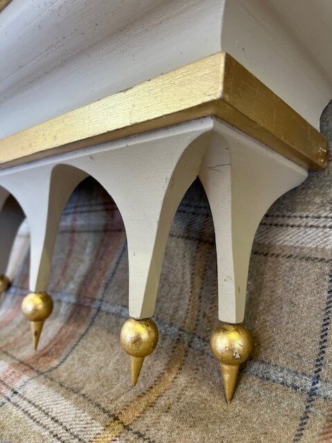 A small model of the Arcadia pelmet – finished in a soft dark cream with gold Dutch metal leaf decoration.