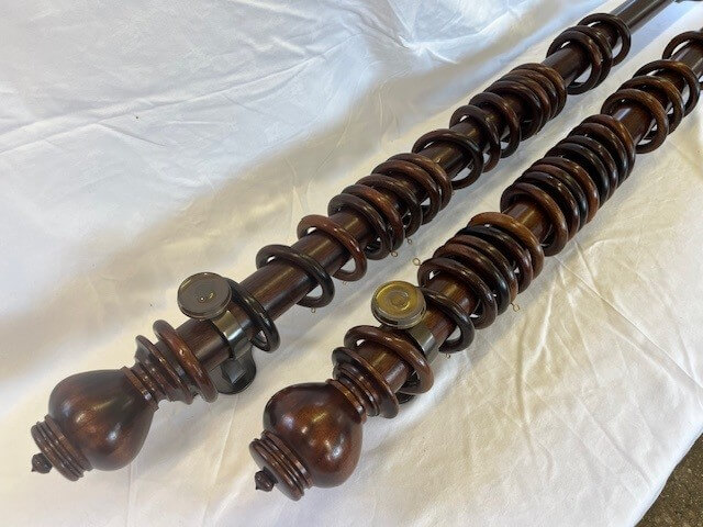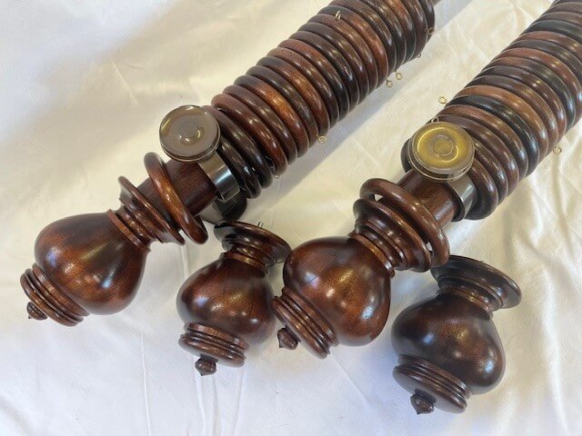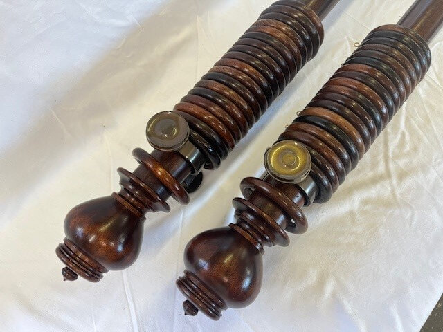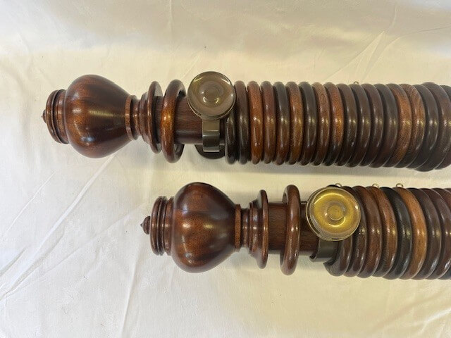 Two Mahogany sets with Uncarved Verona finials, rings and brass brackets