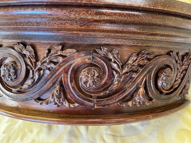 An elegant mahogany corona with our Wimpole mouldings to add some elegance, and finished with polish and wax.